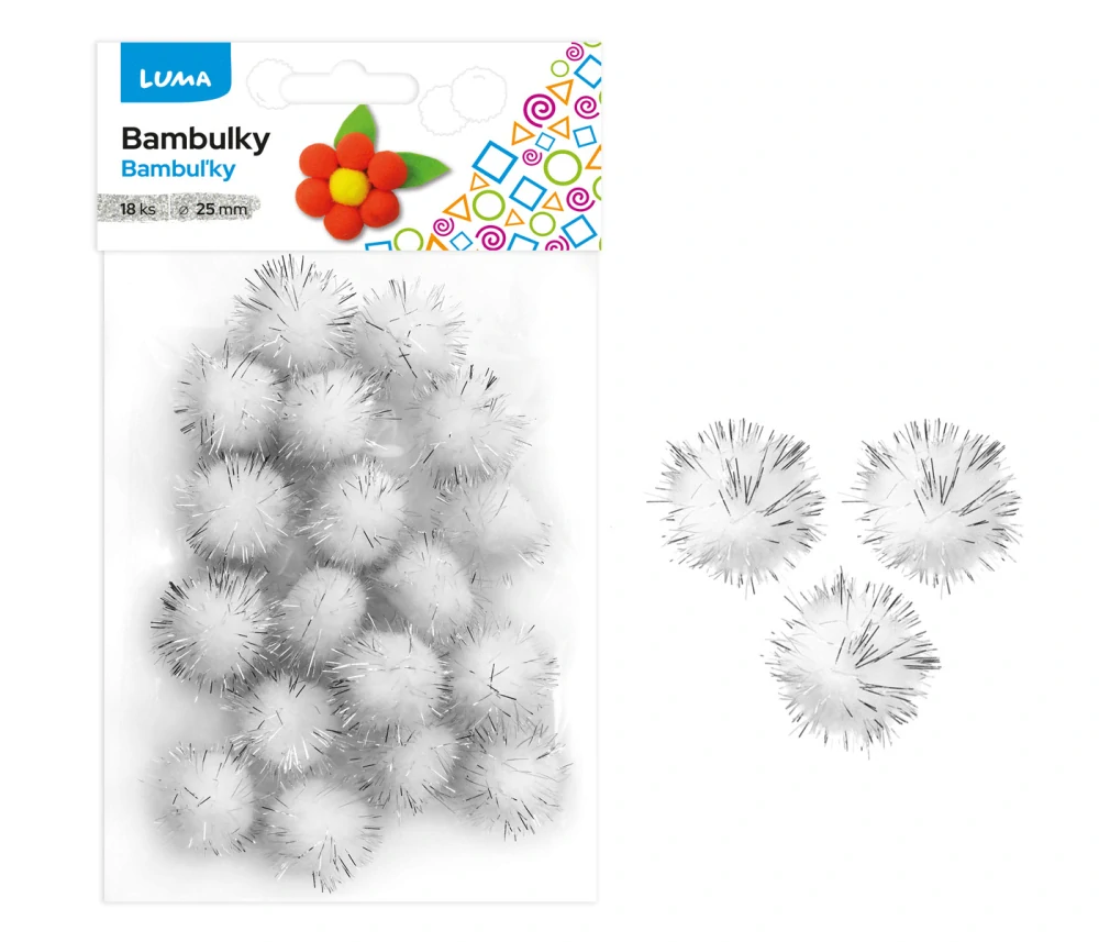 Bambulky metalické bílo-stříbrné, 18ks 25mm LUMA