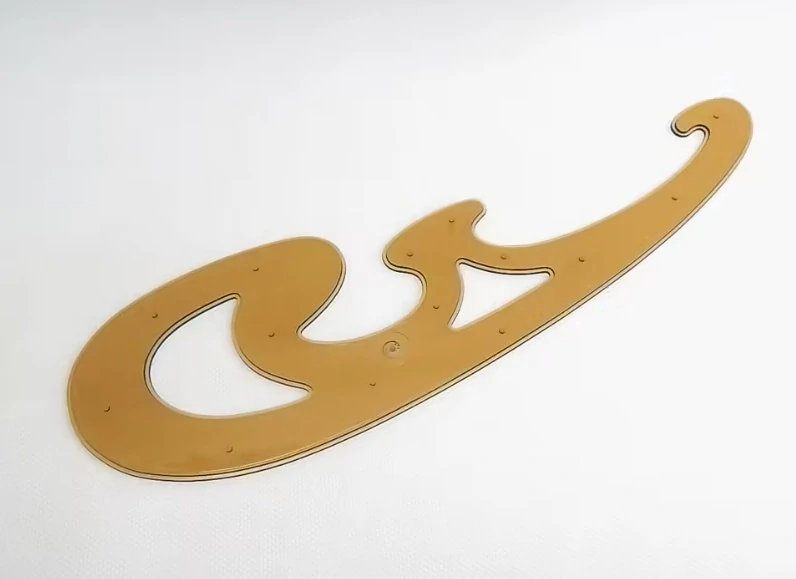 Křivítko K 12 vyrobené z kouřového průhledného polystyrenu. Je určené k rýsování a technickému kreslení křivek ve škole, kanceláři i hobby činnostech. Zabaleno je do polyetylenového sáčku, na kterém je nalepen samolepící štítek s identifikačními údaji.